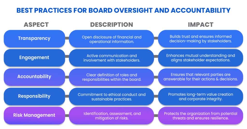 Effective board oversight is the cornerstone of responsible corporate governance. To foster accountability, boards should prioritize transparency and engagement with all stakeholders. This means creating clear channels for communication and ensuring that stakeholders are kept well-informed about key decisions and policies that impact the organization.