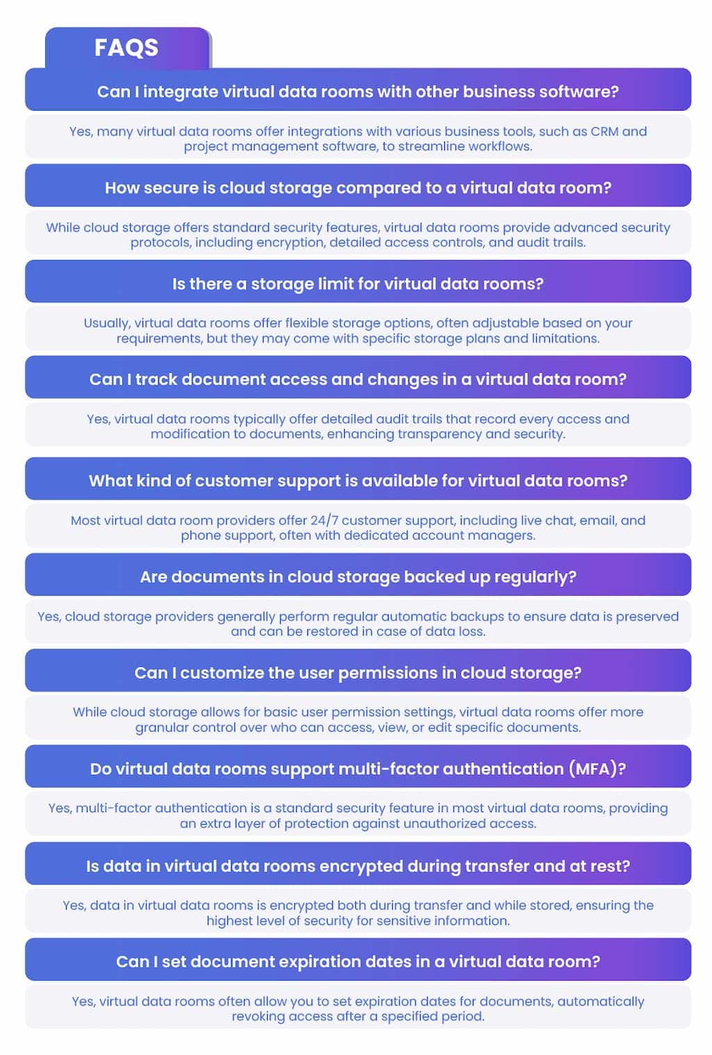 So, whether you’re managing everyday documents or overseeing critical transactions, it’s essential to understand that one size doesn’t fit all when it comes to digital storage solutions. By distinguishing between the functionalities and strengths of cloud storage and VDRs, you can choose the best tool to meet your specific business needs.