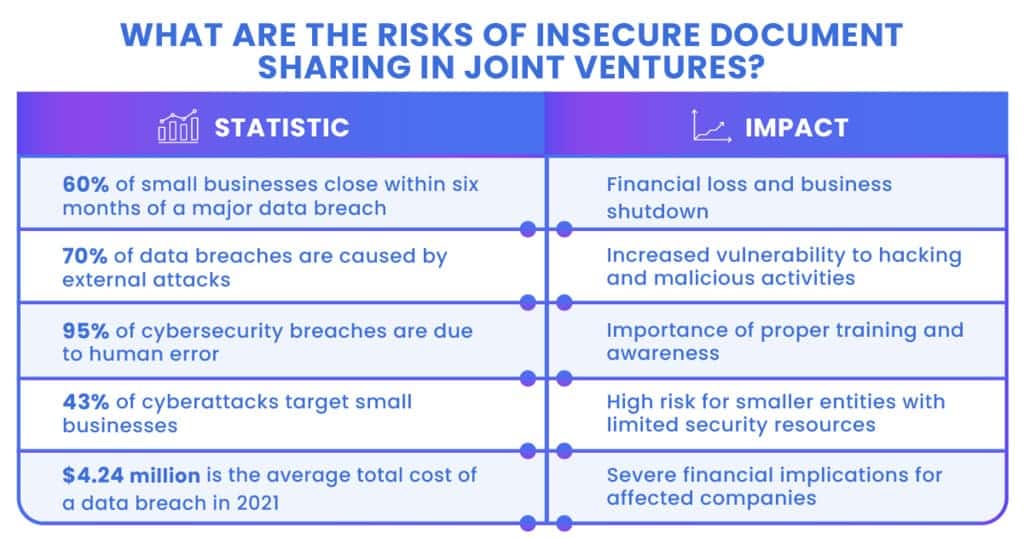 Overall, the risks of insecure document sharing in joint ventures are multifaceted and can have far-reaching consequences. It’s imperative to implement stringent document security measures to safeguard against these potential threats and ensure the success and integrity of the partnership.