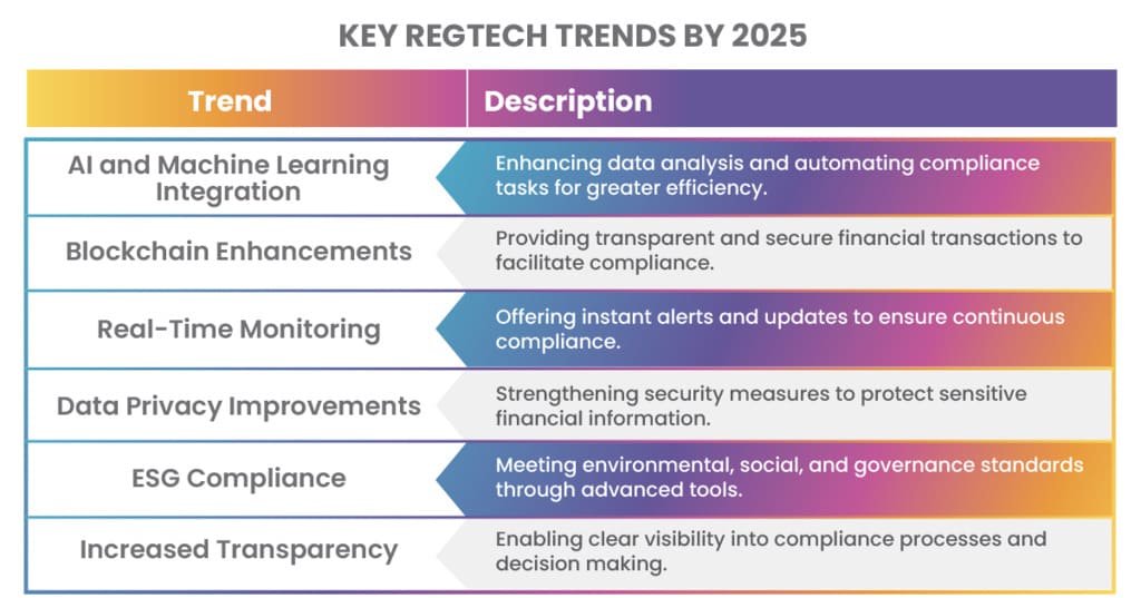 As you look towards 2025, the role of RegTech in ESG (Environmental, Social, and Governance) compliance is pivotal. This technology will enable precise tracking and reporting of ESG metrics, ensuring transparency and accountability. A focus on sustainability means financial institutions will increasingly harness.