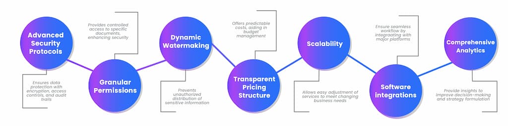 Support and scalability are other crucial aspects. Premium deal room services typically offer dedicated customer support, available 24/7, along with flexibility in scaling the solution to match the growth trajectory of the enterprise. This is essential for accommodating increased data storage needs and additional users without compromising on performance.