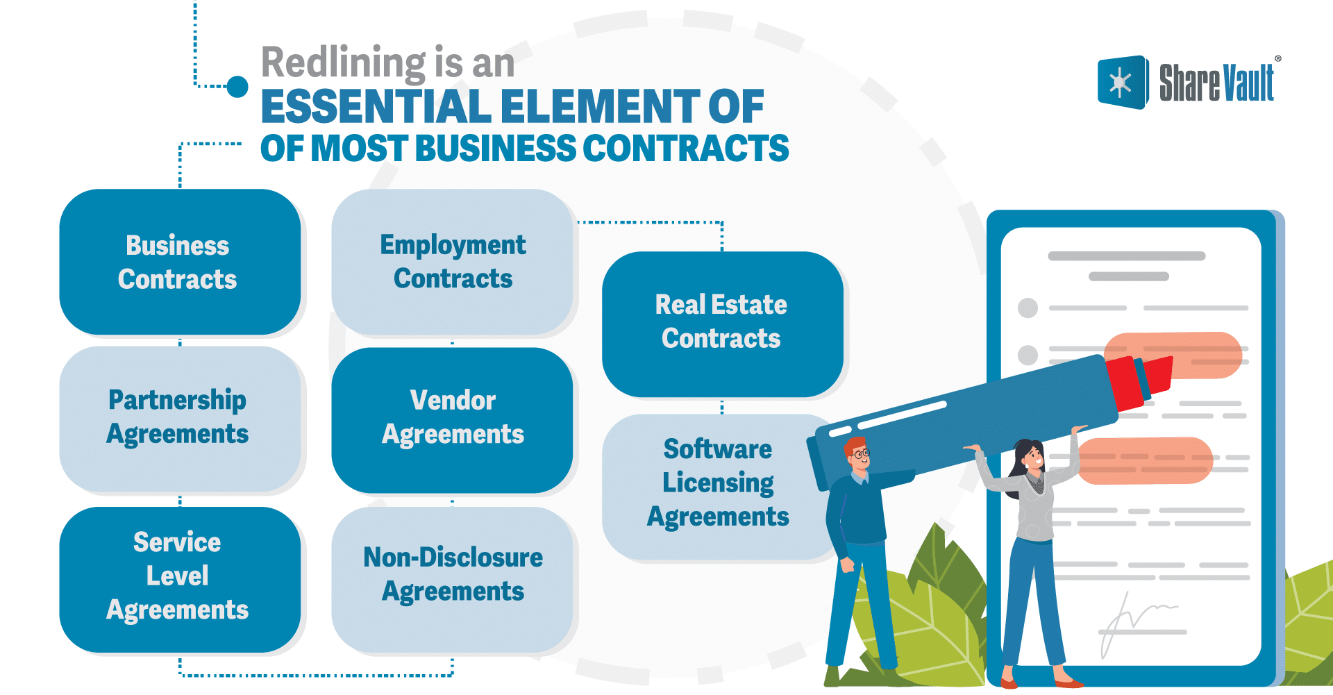 - Non-Disclosure Agreements (NDAs): NDAs are used to protect confidential information. Redlining is the common practice to define the scope and limitations of the agreement.